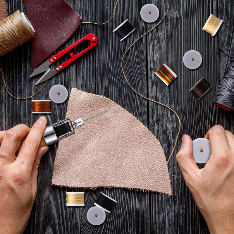 Η βελόνα χειρός για δέρμα επίπλου, είναι ένα εύχρηστο εργαλείο για ράψιμο σε δέρμα, μουσαμά και άλλες παρόμοιες επιφάνειες.