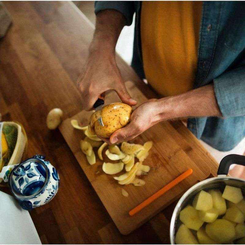 • Ιδανικό για ξεφλούδισμα στρογγυλών λαχανικών και φρούτων με ρίζα.