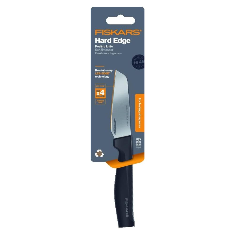 Το Μαχαίρι Ξεφλουδίσματος Fiskars Hard Edge 8,8cm 1051777 είναι ιδανικό για ακριβείς εργασίες καθαρισμού και κοπής μικρών φρούτων και λαχανικών. Η λεπίδα του, κατασκευασμένη από ιαπωνικό ανοξείδωτο ατσάλι, ενισχύεται με την τεχνολογία LZR-EDGE™, προσφέροντας έως και τέσσερις φορές μεγαλύτερη διάρκεια κοπής σε σύγκριση με τα συμβατικά μαχαίρια. Η εργονομική λαβή με τρισδιάστατη υφή εξασφαλίζει άνετο και ασφαλές κράτημα, ενώ η προστασία δακτύλων προσφέρει επιπλέον ασφάλεια κατά τη χρήση. Το μαχαίρι είναι κατάλληλο για πλυντήριο πιάτων, διευκολύνοντας τον καθαρισμό του.