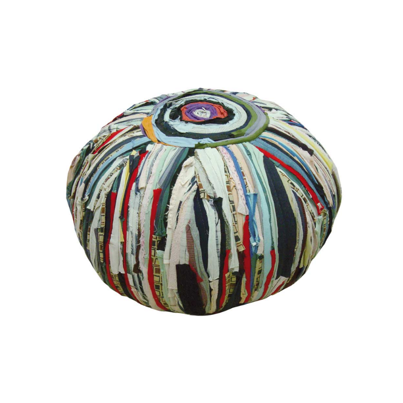 Πουφ πολύχρωμο ιδανικό για διακόσμηση, φτιαγμένο από διάφορα μπαλώματα και κομμάτια μπλουζών.