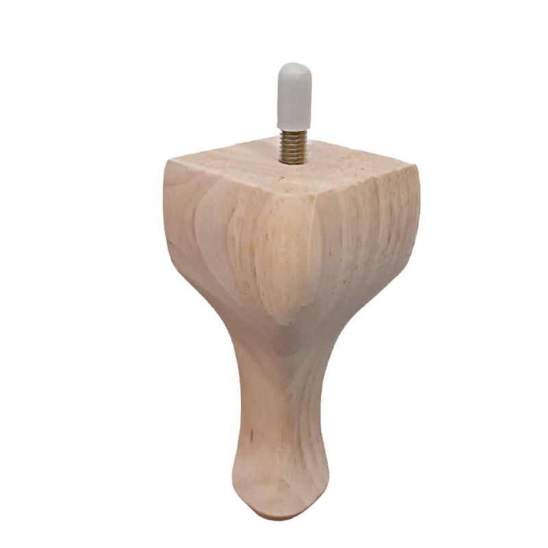 Ξύλινο πόδι επίπλου καμπυλωτό και σκαλιστό, σε φυσικό χρώμα ξύλου και με ύψος 13cm, το οποίο αποτελεί μια εξαιρετική επιλογή για έπιπλα, που απαιτούν μοντέρνα και κομψή βάση.
