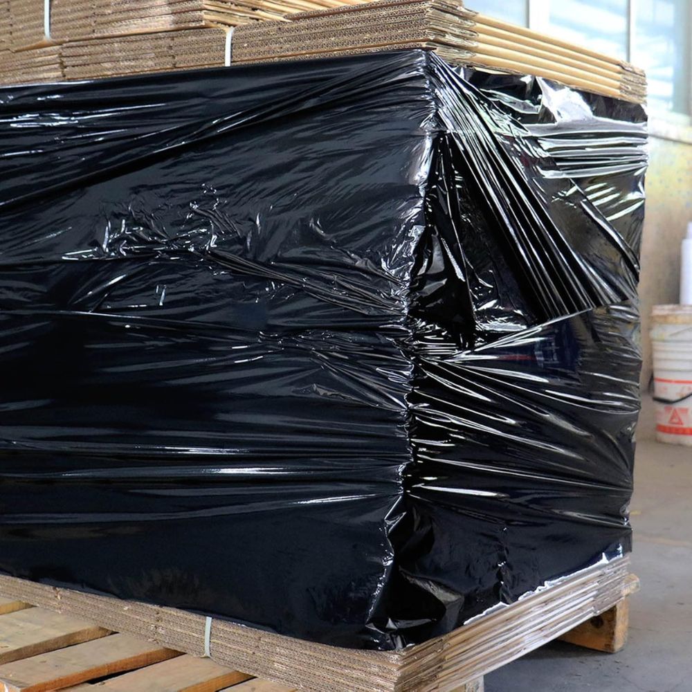 Το μαύρο φιλμ αποτρέπει την αναγνώριση του περιεχομένου, ενώ η ελαστικότητά του εξασφαλίζει σωστή εφαρμογή γύρω από κιβώτια, παλέτες και αντικείμενα διαφορετικών διαστάσεων.